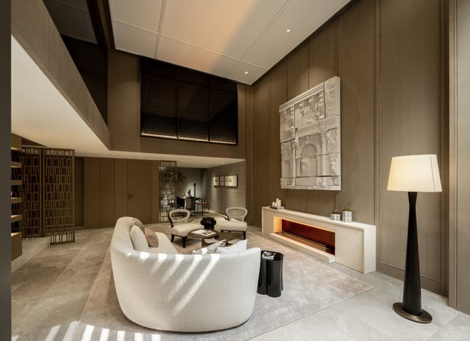 顶部具有昭示感的塔冠,成就璀璨夺目的城市天际线。叠墅产品,采用经典三段式设计,以传统经典演绎现代时尚,超扁平极简立面镜像,配合局部天青色釉面陶板,筑就放眼国际的新式摩登,为时代骄子而来。