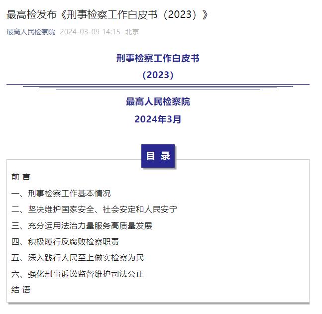 最高检发布白皮书|2023年受理审查逮捕各类犯罪1209052人