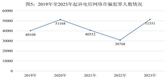 全国检察机关共起诉电信网络诈骗犯罪51351人,同比上升66.9%。受电信网络诈骗犯罪高发影响,帮信罪、掩隐罪、妨害国(边)境管理类犯罪等关联犯罪也呈现上升态势,其中,起诉帮信罪146579人,同比上升13%;起诉掩隐罪137386人,同比上升66.2%;起诉妨害国(边)境管理类犯罪31442人,同比上升13.3%。